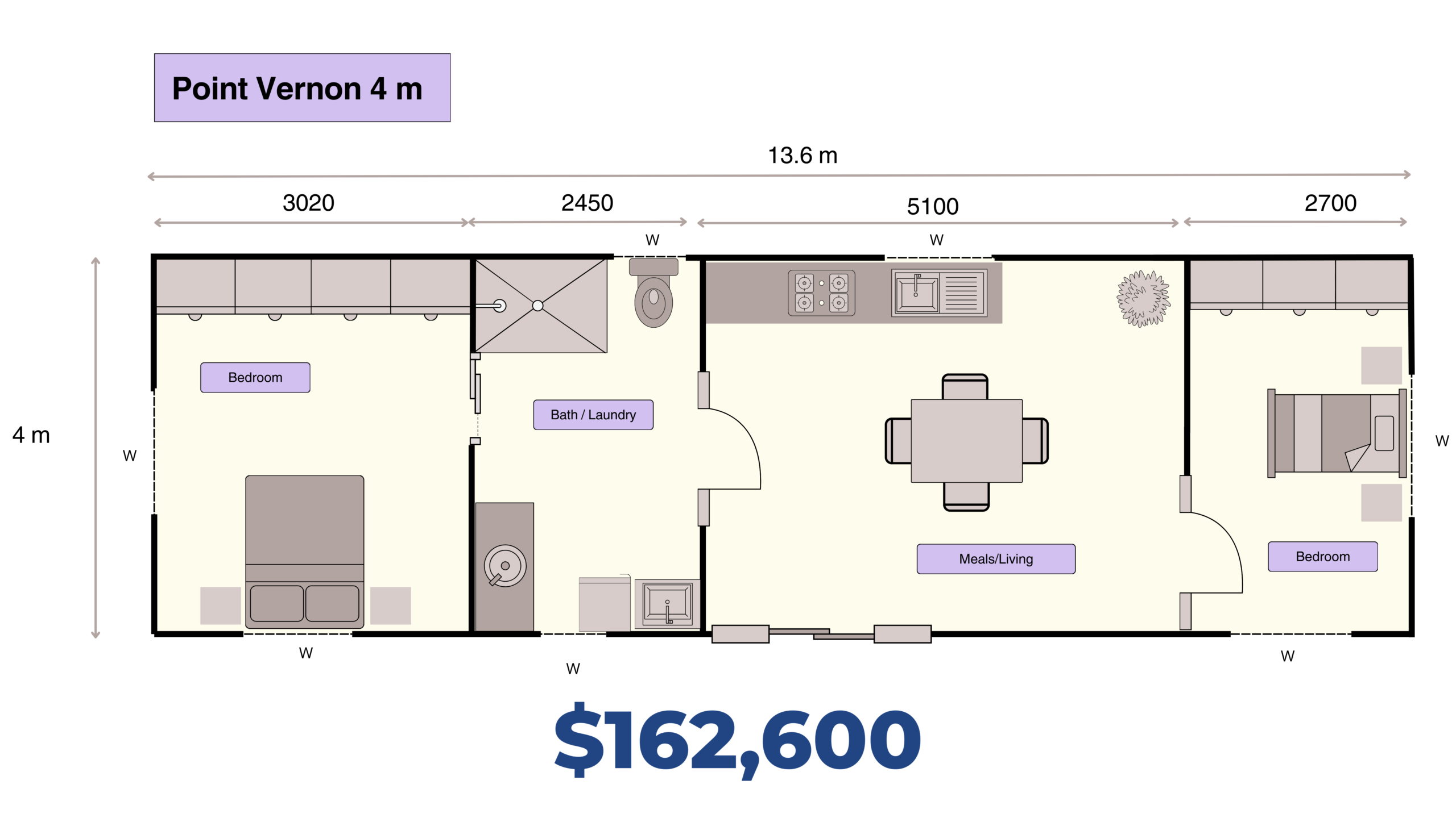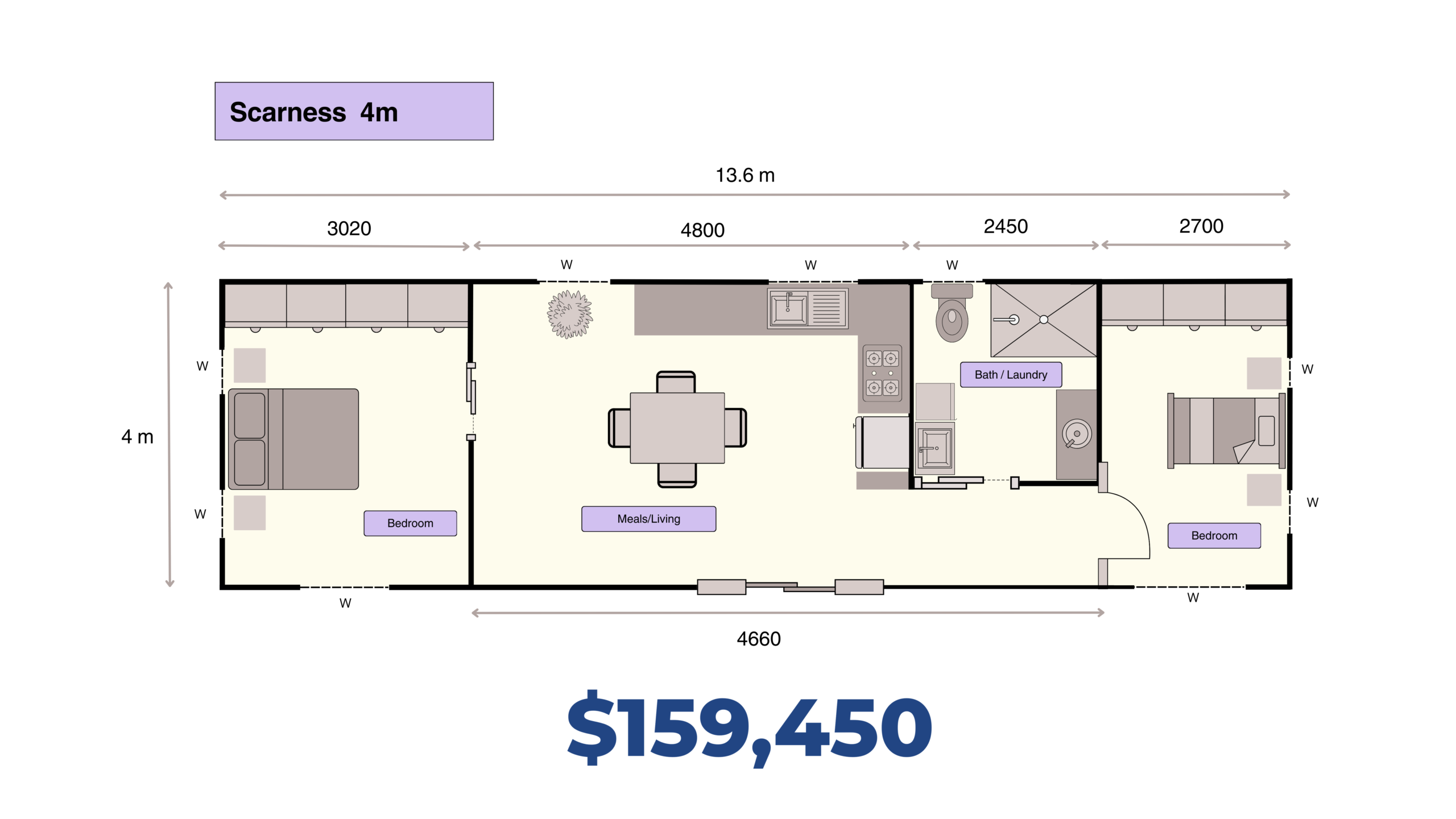 Not included in standard pricing: Sliding doors to robe, Custom Kitchens, Security Screens, and Transport.
